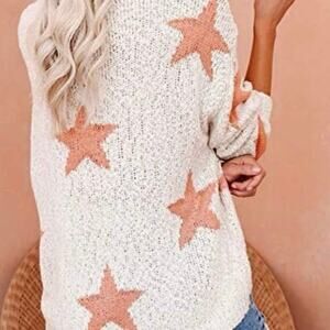 Indulge in the delightful blend of warmth and style with this soft knitted pullover! Like a cozy hug for your wardrobe, its creamy hue and playful star pattern bring a touch of charm to your look, whether you're lounging at home or stepping out for a stroll. This sweater is a small wonder waiting to make you feel fabulous, effortlessly blending comfort with flair. And remember, handwashing is the secret to keeping this cozy companion as vibrant as your style, ensuring you stay snug and stylish all season long!