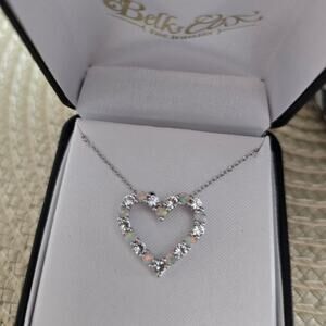 New Created Opal and white saphire Heart Pendant Necklace in Sterling Silver