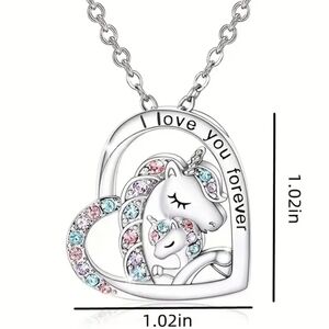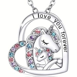 Creative Heart-Shaped Cute Unicorn Hug Pendant Necklace For Women Inlaid With Colored Zircon Necklace Mother's Day Gift Jewelry