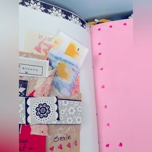 Creative journal with free ephemera.🧸handcrafted by me. descriptions: I sewed every pages one by one. I added surprises, pockets, stickers and ephemera inside the journal. 8”. More than 25 pages. Also it has blank pages for add your thoughts, drawing & creativity. Xtra ephemera will be include as a free gifts. I made this journal with dedications & love. It’s took me more than 4 days or more to finished it.🛍️check out my other journal available in my shop🛍️. # creative journal # handcrafted # handmade # journalism #spring #heart theme, #birthday # holiday junk journal💖💖💖💖