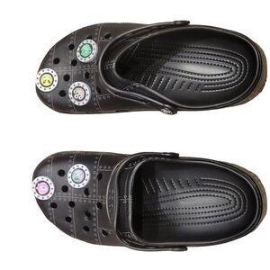Step into style with these Classic Crocs x Ron English Clog Area 54 Black Alien RARE Men's Size 10 Shoes. Slip on these comfortable shoes featuring a round toe and standard shoe width. Perfect for travel, activewear, or casual outfits, these shoes come with a solid pattern and Astro Boy character accents.