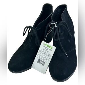 New Crocs Leigh Suede Wedge Women's 6.5 Black suede Ankle Boots