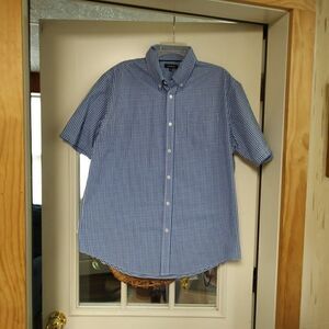 New Croft & Barrow Blue Checked Short Sleeve Button Down Shirt Size Men's L