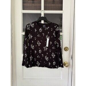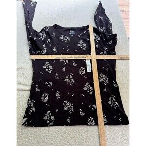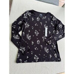 New Croft & Barrow Crew neck long sleeve Floral 100% cotton Tee top L Black