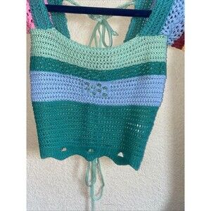 Brand new with tag davi and dani super cute must have fun Womens Y2k Cropped sweater open knit crochet Knit Top Long sleeve with Flared bell Sleeve Square Neck Sweater Trendy Color Block bright vibrant loud Stripes