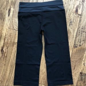 Black with gray banded waist. Thick legging tights material like Lululemon. No brand anywhere to be found. Has slit pocket on waist like lulu. Fitted in the waist, butt and hip then looser on calf. Size Small I’m guessing. Please see measurements. Never worn. No tags.