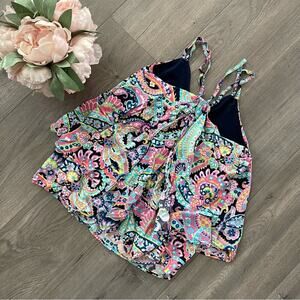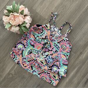 New Crown & Ivy Colorful Burst Tiered Strappy Flowy Blouse