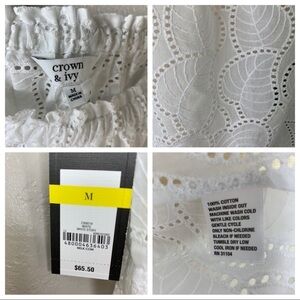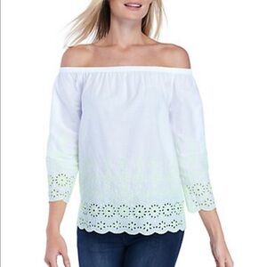 New Crown & Ivy White 3/4 Sleeve Woven Eyelet Top Bare Shoulders Size Medium