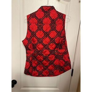 New Crown & Ivy womens puffer vest sleeveless quilted red black patterned gold h