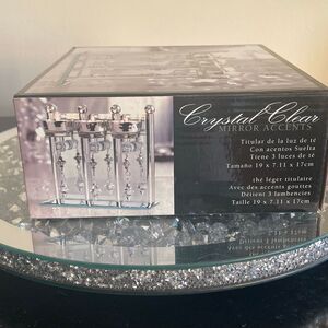 Super beautiful candle holder with mirror accents to add a lovely glow to your home.
