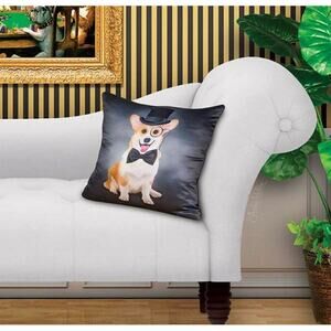 New Cultured Corgi Puppy Dog Top Hat Monocle & Tie Pillow Cover Home Gift