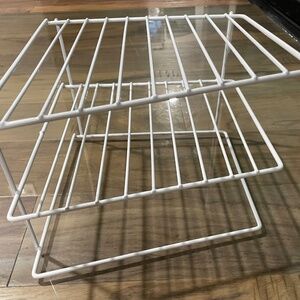 Sits inside cupboard and pries additional shelves to stack plates into different piles