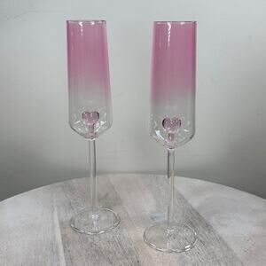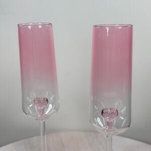 New Cupcakes and Cashmere set of 2 Champagne Flutes Glasses Pink Heart Viral