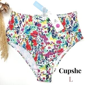New Cupshe Pink Blue Floral Swim Bottoms Sz L