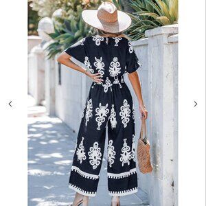 New Cupshe Smocked Wide Leg Navy & White Print Jumpsuit Suit Medium
