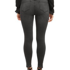 NWT Women's Curvy High Waist Ankle Studded Hem Denim Pants. Sise 14.