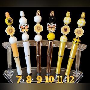 New! Custom Made Beautiful Butterflies & Sunflowers Beaded Pen w/Free Ink Refill