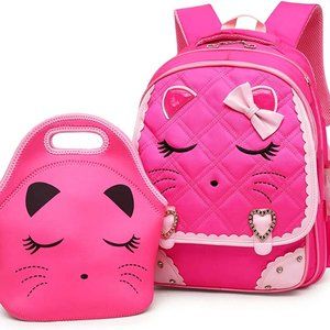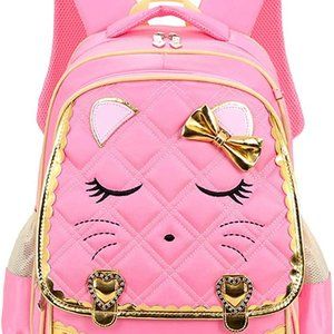 * New Cute Cat Face Bow Diamond Bling Waterproof Pink School Backpack Girls Book