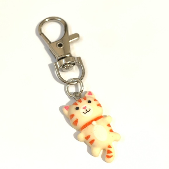 Adorable cream and orange cat keychain, perfect for pet lovers. Add a touch of charm to your keys or bag.