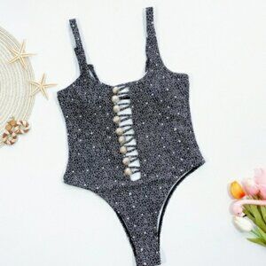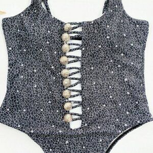 New Cutout High Leg Onepiece Swimsuit with Buttons