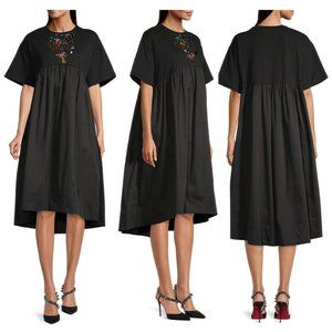 New Cynthia Rowley Jeweled Gemstone Gem Stone Hi Low Black T-Shirt Tee Dress