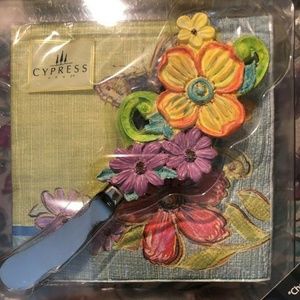 Cypress Home "Cheesy Gift" Set - Cutting Board, Napkins and Spreader