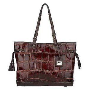 Authentic Dooney & Bourke, Croc Embossed Double Strap Tassel Convertible Shoulder Bag