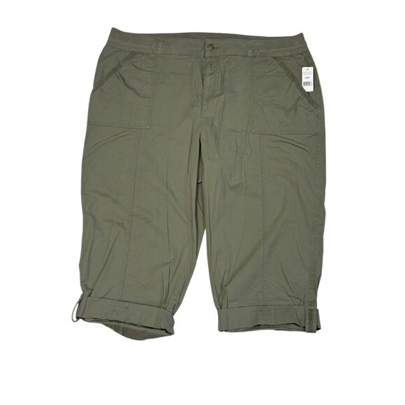 New DIP Capri Pant Womens Plus 22 Green Soft Utility W/Extended Waist Carg
