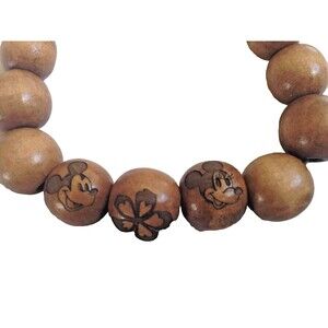 New DISNEY Store MINNIE & Mickey MOUSE Wood Beads Necklace Strand Adult Jewelry