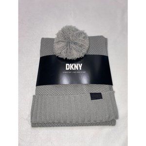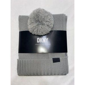New DKNY 2 Piece Scarf and Pom Beanie Hat
