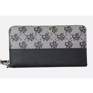 New DKNY Boxed Bryant Large Zip Around Continental Wallet Grey / Black