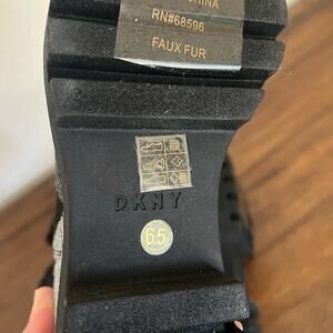 New without box. A chunky lug platform grounds the sleek silhouette of DKNY's Bax booties, topped in a faux-fur collar for a cozy finish.
