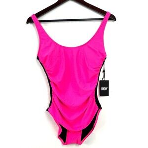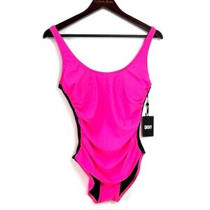 New DKNY One Piece Womens Sz 8 Hot Pink Swimsuit Beach Vacation Resort Rusching