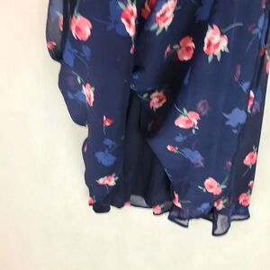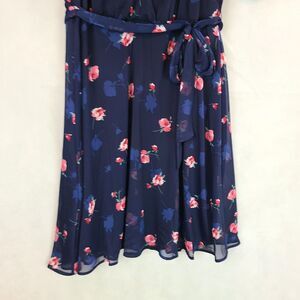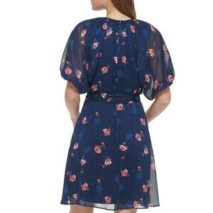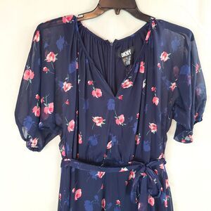 New DKNY Women's (12) Blue and Pink Floral Print Chiffon Fit & Flare Dress $134