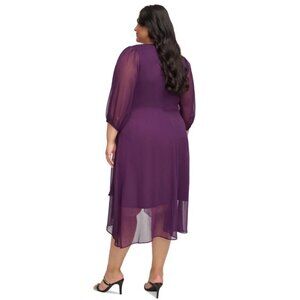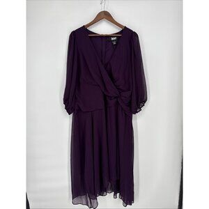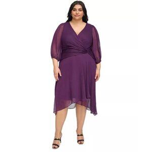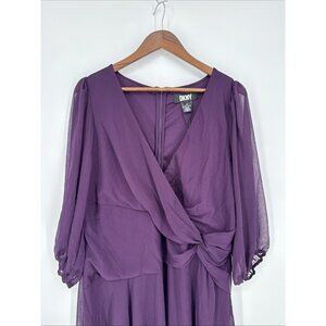 New DKNY Womens Size 14W Purple Twist Front Hem Balloon Sleeve Midi Dress Plus