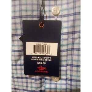 New DOCKERS Battery Street NWT Blue Cotton Poly Spandex 15-15.5 32-33 (M) Shirt