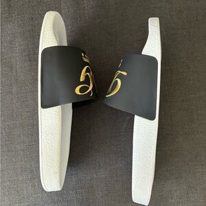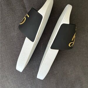 Gorgeous brand new with tags, 100% Authentic Dolce & Gabbana black slides with gold logo embroidery.