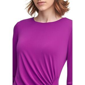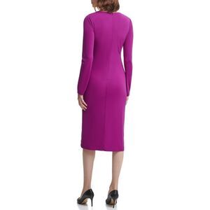 New! DONNA KARAN Side-Ruched Long Sleeve Matte Jersey Midi Sheath Dress Magenta