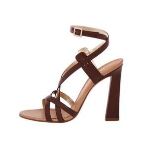 New DSQUARED2 Women Shoes US 8 Brown Leather Ankle Strap Stiletto Heel Sandals