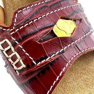 - Genuine croc embossed leather upper, soft suede leather lining, wooden sole.