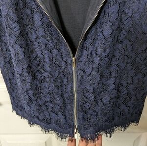 Rayon, Nylon, Viscose, Silk, DVF, Diane Von Furstenberg, Women, Woman, Women's, Size 10, Luxury, Luxe, Luxurious, Designer, Skirt, Pencil Skirt, Zip Up, Exposed Zipper, Zipper Back, Dressy, Work, Career, Office, Workwear, Business Casual, Date Night, Formal, Eyelash Lace, Lacey, Lacy, Lace, Navy Blue, Blue, Scotia, DVF Scotia Skirt, NWOT, New, New Without Tags, RN 84177