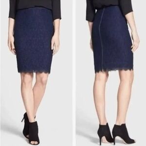 New DVF Diane Von Furstenberg Scotia Navy Blue Eyelash Lace Pencil Skirt Size 10