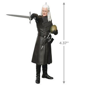 Brand new in box and never opened, hard-to-find premium quality Hallmark Keepsake Christmas ornament only made in 2024, titled "Daemon Targaryen" it depicts the fantasy prince played by Matt Smith holding a dragon egg and extended sword from the HBO television series House of the Dragon, the prequel to the hit Game of Thrones series by George RR Martin.