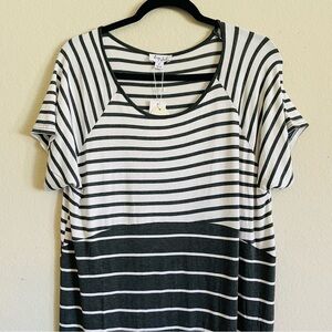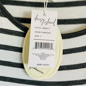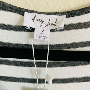 New Daisy island maxi t shirt dress L gray black white striped stretch casual