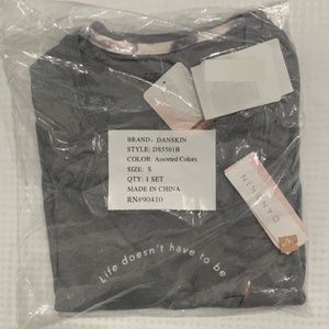 Brand new with tags. New Danskin Women's 2 Piece Life Doesn't Have To Be Perfect Biker Shortie Pajamas PJs Set Color: Heather Gray 2 Piece set Short sleeve graphic front tee with split hem Printed elastic waistband shorts Fabric provides stretch Pull on style Polyester l Spandex S - AT14 M - AT15 L - AT16