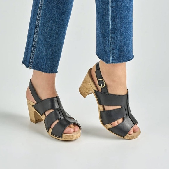 dansko tatiana leather sandals peep toe black boho chic comfort heel summer shoes minimal classic versatile neutral