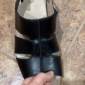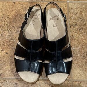 New Dansko Woman Tatiana Leather Heel Sandals Sz 38 Black Classic Comfort Boho