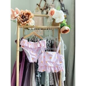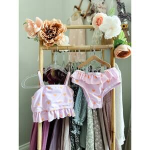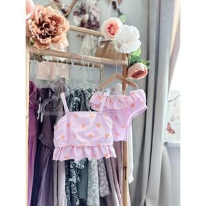 New Darling Heart Print Blush Pink Frill Trim 2pc Cami Swimsuit 4T