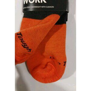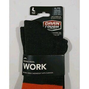 New Darn Tough Merino Wool Work Micro Crew Socks. Size XL 12.5-14.5. Orange and black. Style 2007. Midweight with cushion. New with tags. No flaws noted.