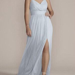 New David's Bridal Sz 6 Long Mystic Blue Ruched Slit Wedding Dress Gown Formal